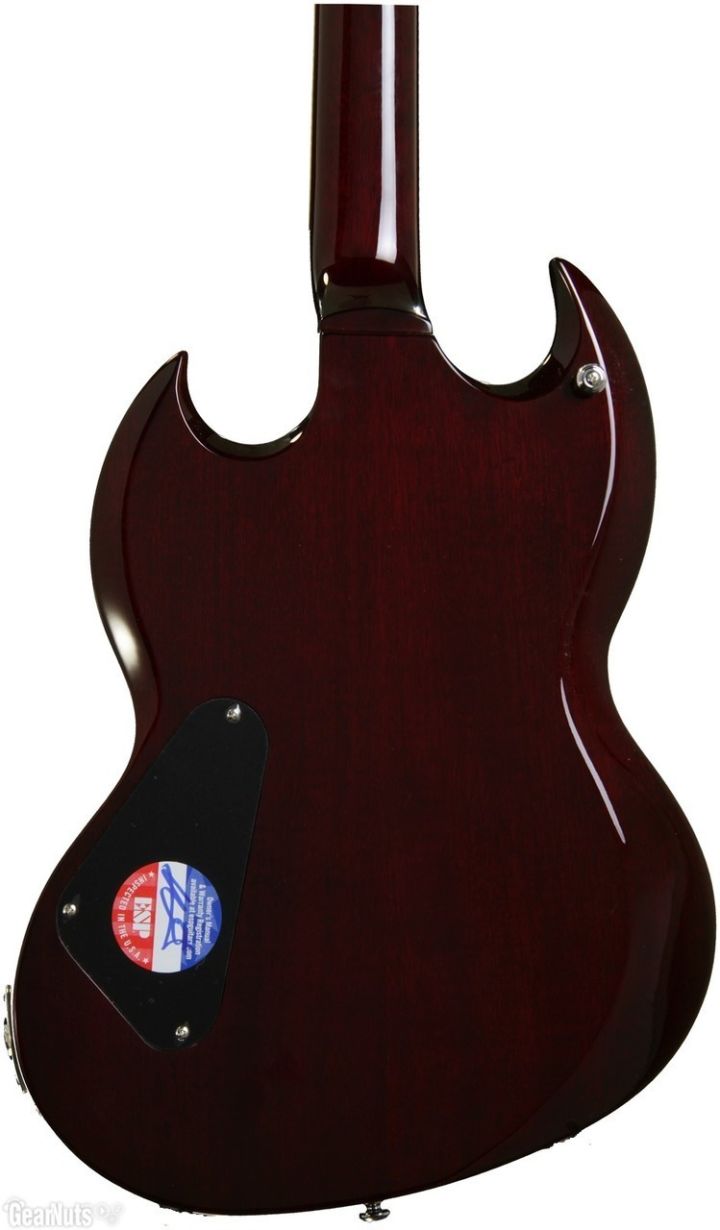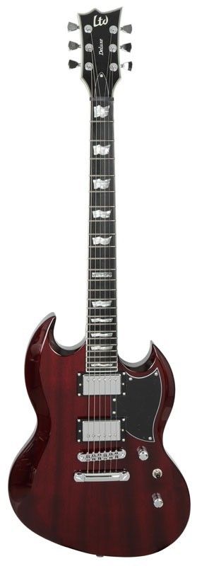 这把LTD viper1000是LTD韩产的高端型号,SG的琴型说明了这把琴是弹奏摇滚甚至金属类的音乐,桃花心木的通颈琴体让声音更加浑厚饱满。