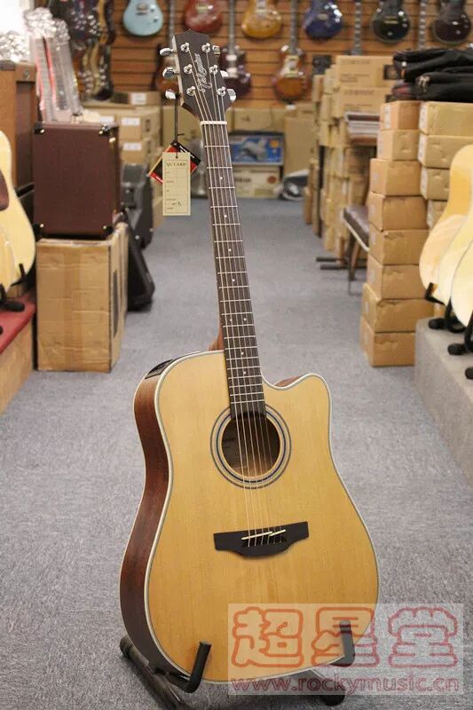 GD20CE采用了Takamine比较惯用的红松面板搭配上桃花芯背侧,红松温暖的音色比较常用在古典吉他的面板上,Takamine为了使整体音色不那么“闷”而采用了红松搭配桃花芯背侧,让整体音色不那么闷,颗粒感更强、频段更加清晰。