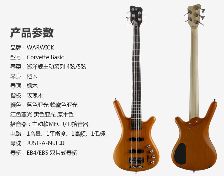 WarwickRockBass Corvette $$ 4弦双美金电贝司