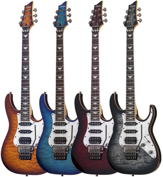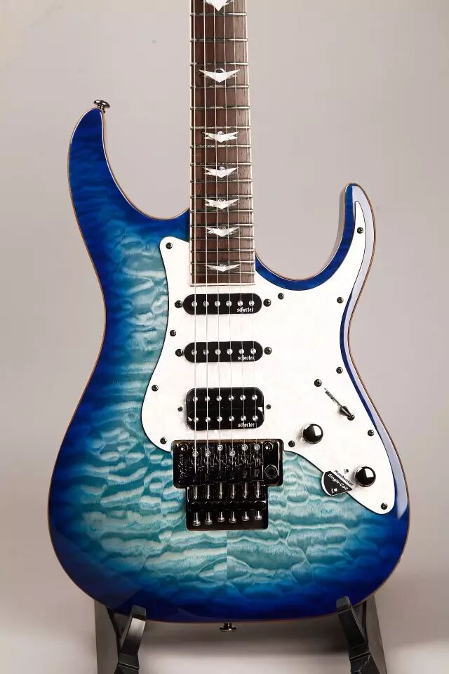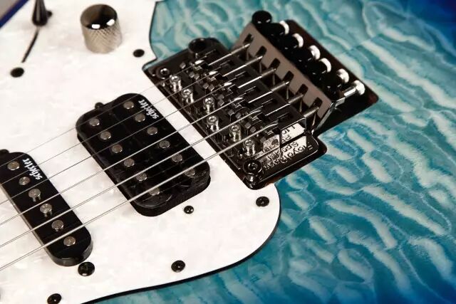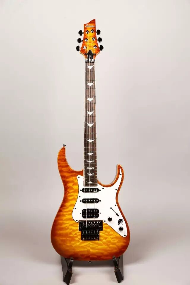 Schecter Diamond Plus/Single Coil搭配的单单双拾音器组使得这款琴能适合更多风格的音乐,Schecter Diamond Plus是一个能切单的双线圈拾音器,为使用者的音色提供更多的选择,琴面带有枫木贴面,搭配精美的渐变亮漆,非常漂亮。总的来说这款琴的外观和可用性都很好,特别适合喜欢高颜值和高性价比的人。
